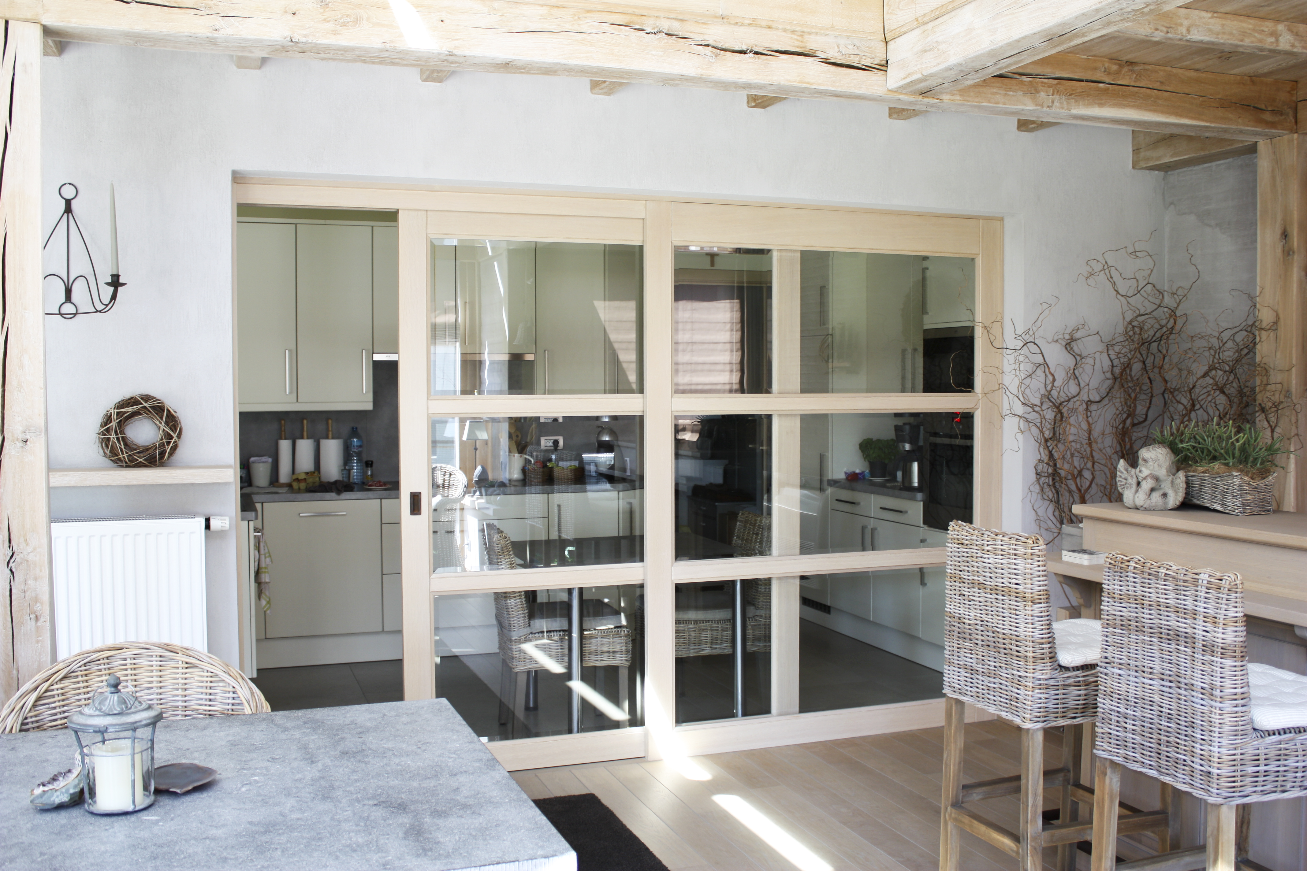 Schuifdeuren die verdwijnen in de wand, schuifdeuren voor de muur met een mooi zichtbaar railsysteem, pivoterende deuren, dat alles behoort tot de mogelijkheden.